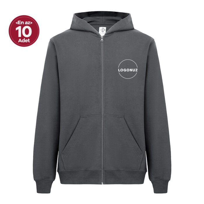 Recycle Kapüşonlu Fermuarlı Antrasit Sweatshirt