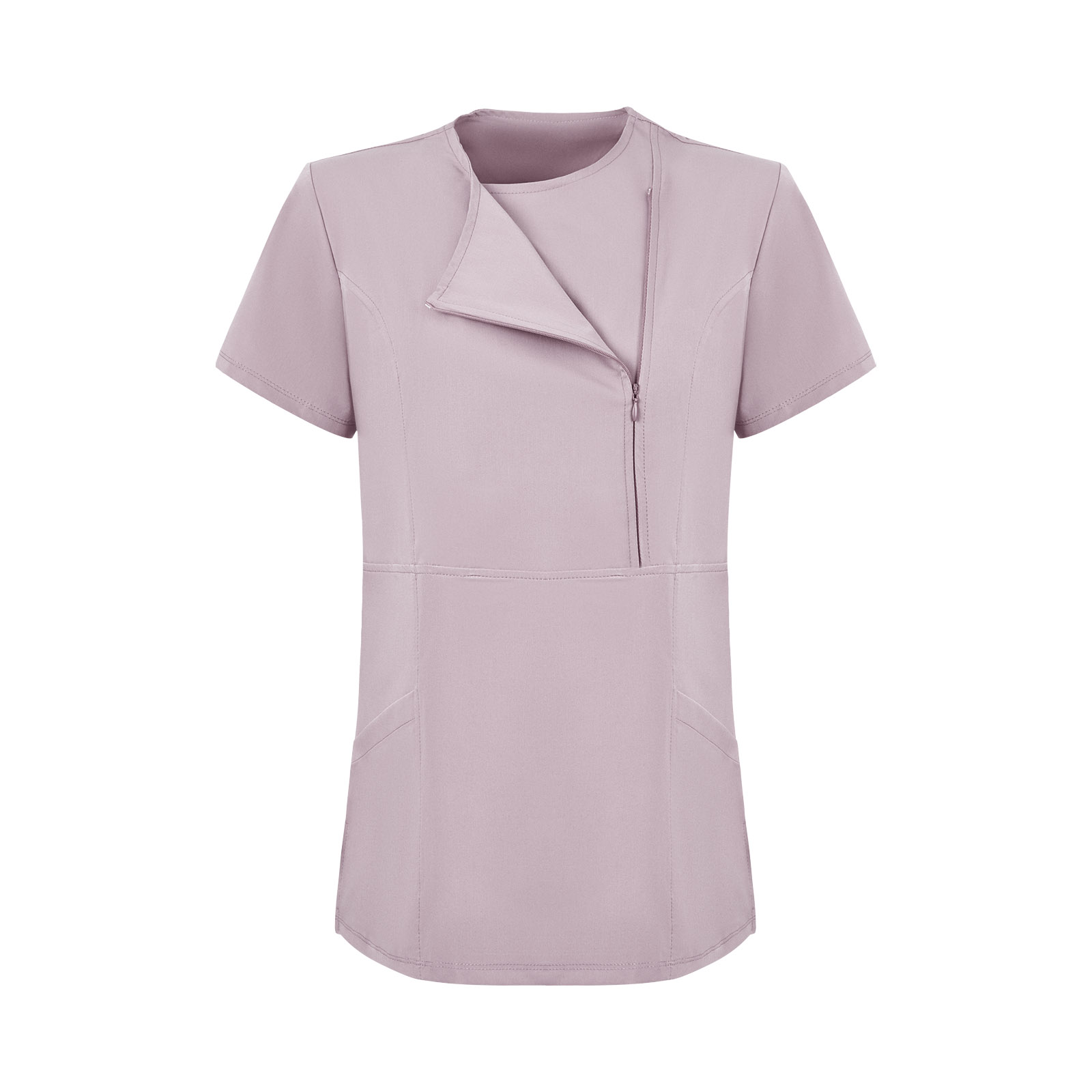 Gri Kadın Özel Yaka Gizli Fermuarlı Doktor ve Hemşire Cerrahi Forması Üst