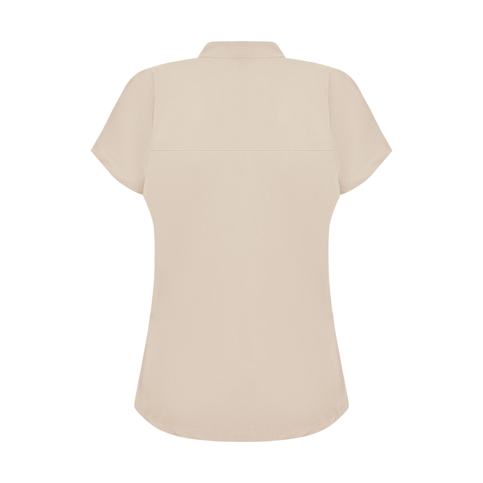 Kadınlara özel olarak tasarlanan bu model sadece üst forma olarak gönderilmektedir. Hakim yaka detayıyla tasarlanan ürün, üç adet çıtçıt ve gizli pat sistemiyle kapanmaktadır. Robalı yapısı ve iki adet yandan gizli cebiyle hem fonksiyonel hem de şık bir kullanım sunar. Yarasa kol formuna sahiptir; bu modelde kol bölümü tek parçadan oluşur ve dikiş bulunmaz. Likralı hemşire ve doktor forması modellerimiz, %70 PES, %26 viskon ve %4 likra içeren poliviskon kumaştan üretilmiştir.