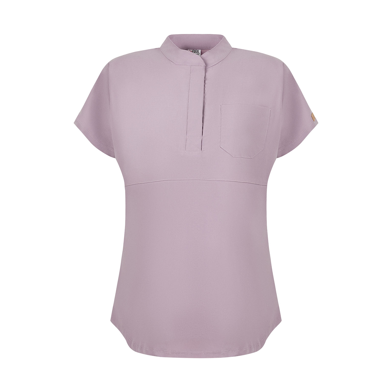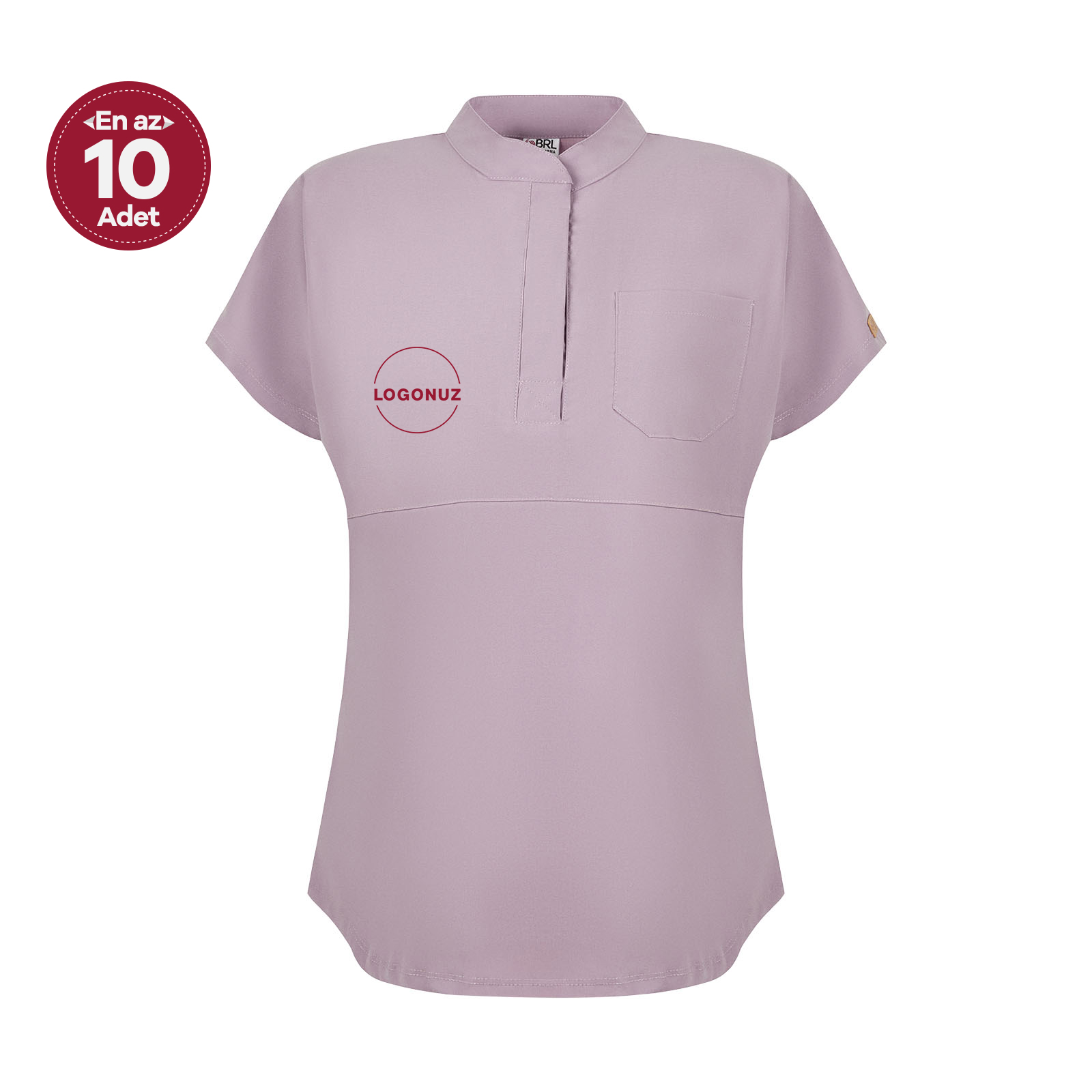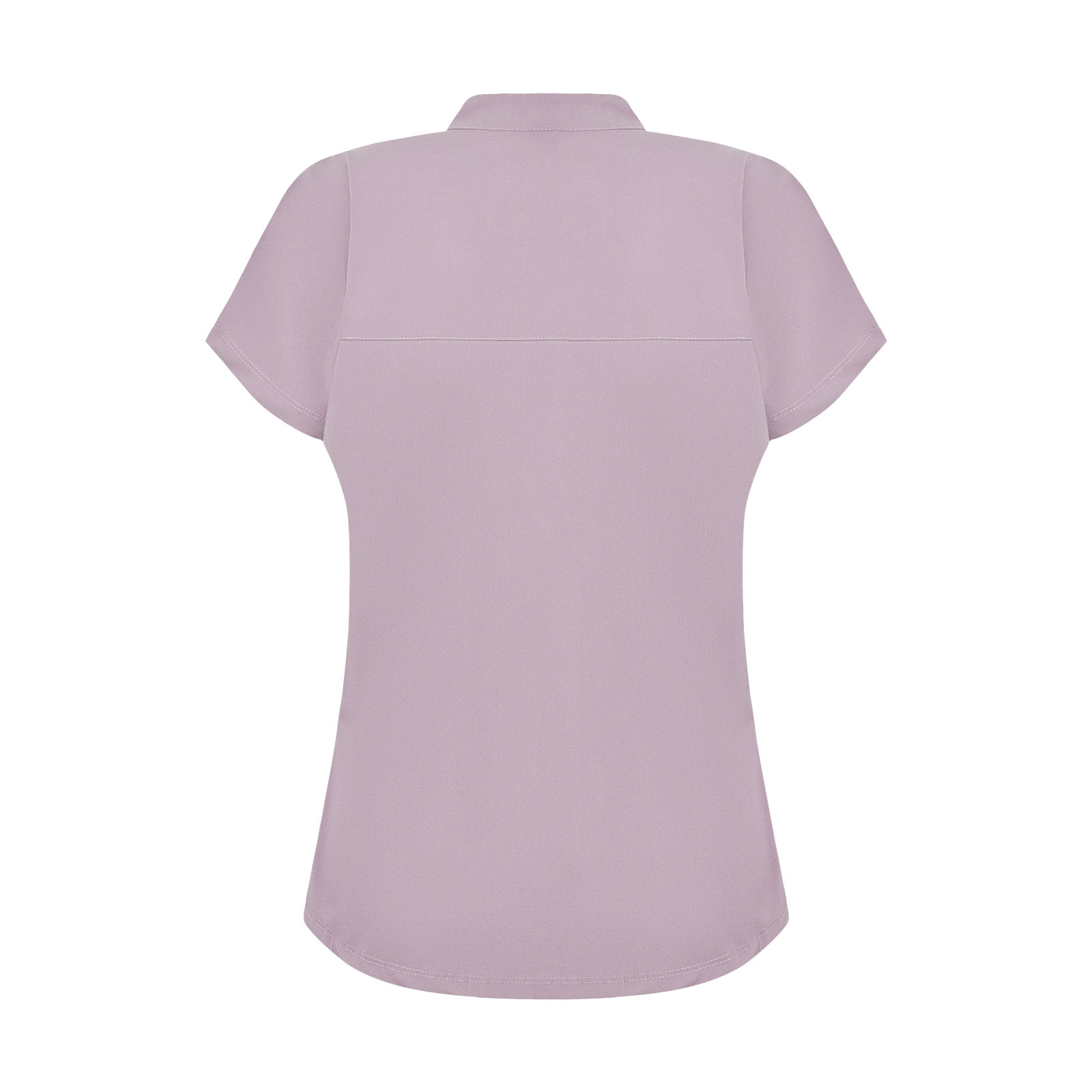 Lila Kadın Çıt Çıtlı Likralı Hakim Yaka Doktor ve Hemşire Cerrahi Forma Üst