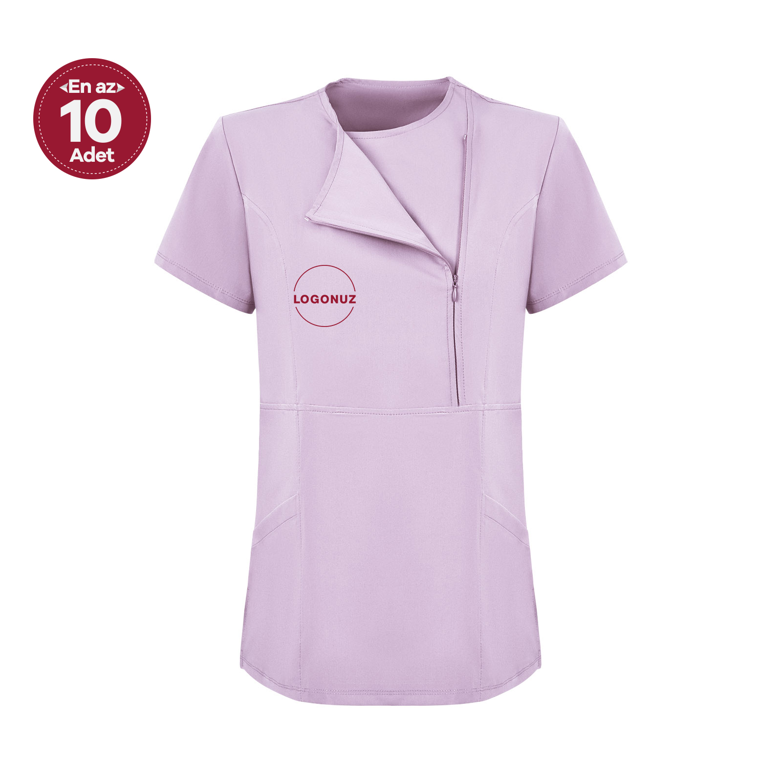 Leylak Kadın Özel Yaka Gizli Fermuarlı Doktor Ve Hemşire Cerrahi Forması Üst