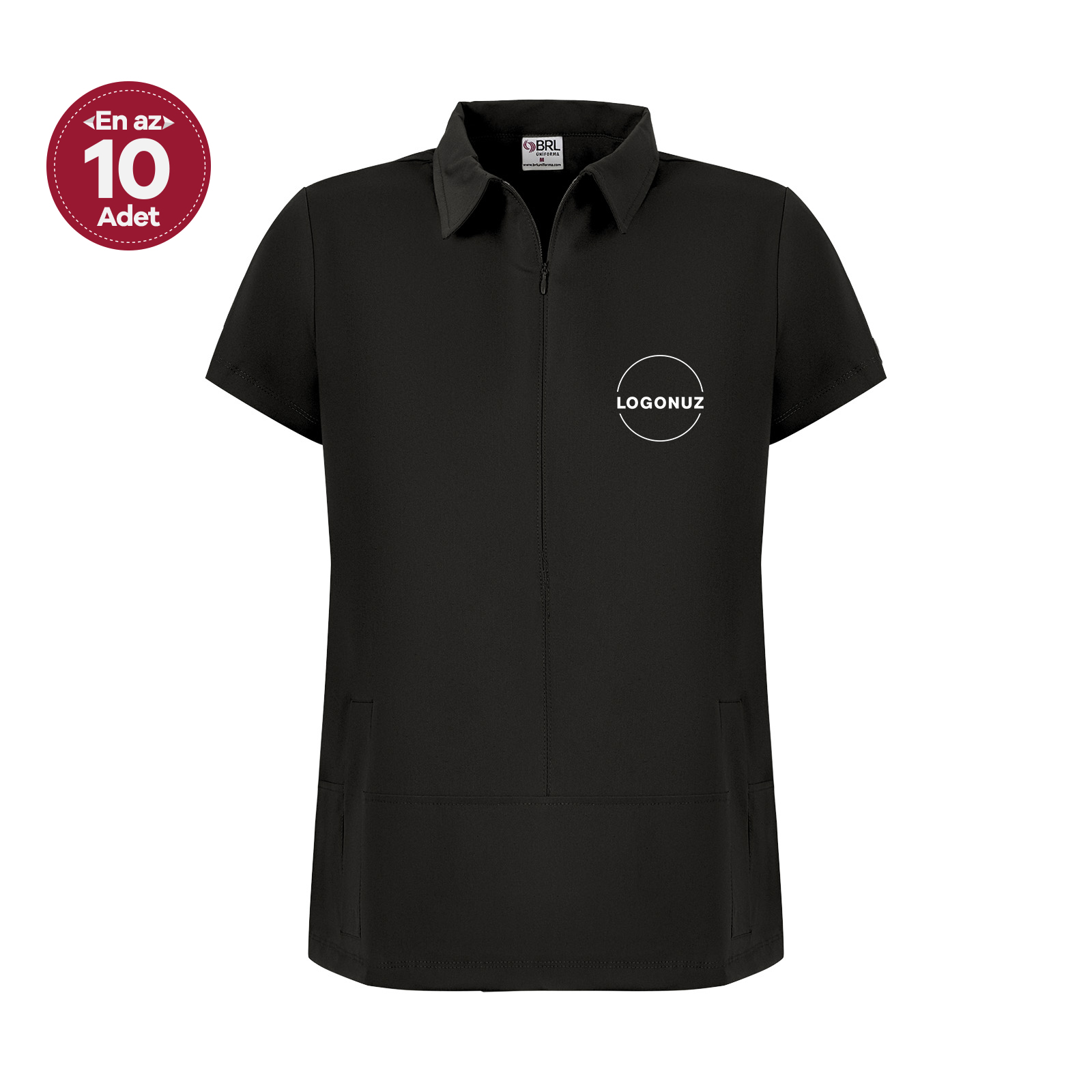 Siyah Kadın Özel Yaka Gizli Fermuarlı Doktor Ve Hemşire Cerrahi Forması Üst