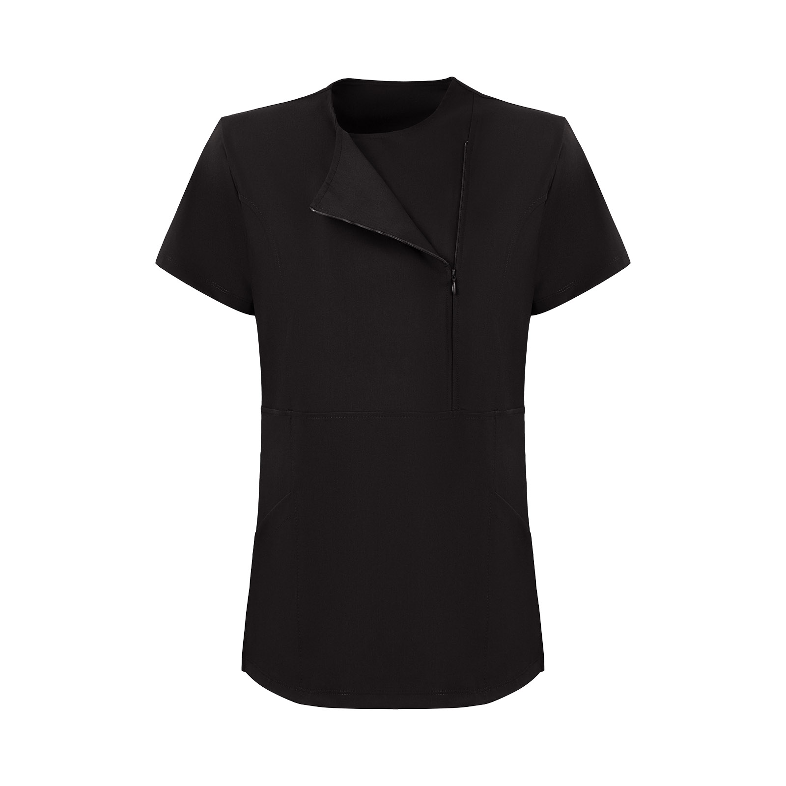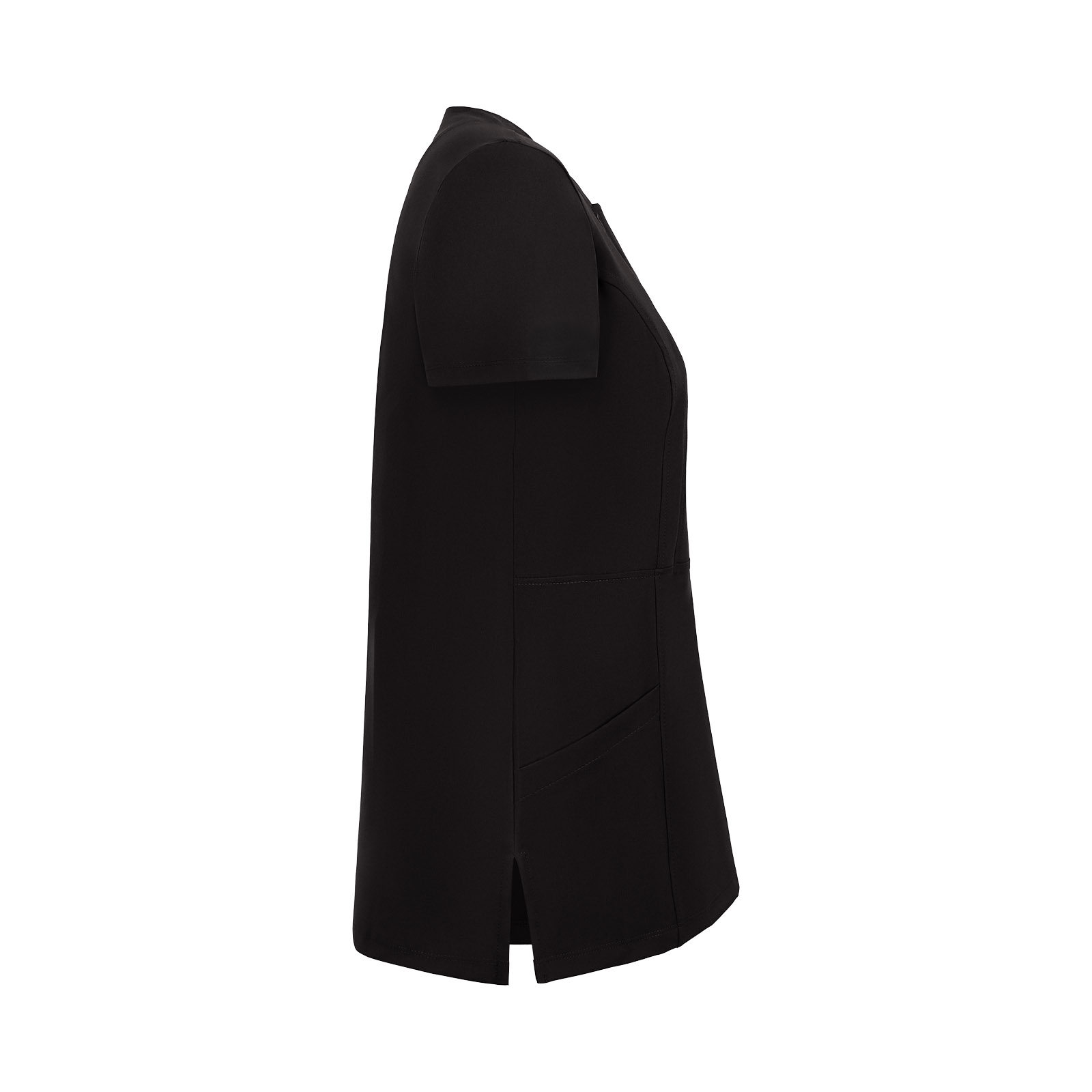 Siyah Kadın Gizli Fermuar Yan Cepli Polo Yaka Doktor ve Hemşire Cerrahi Forma Üst