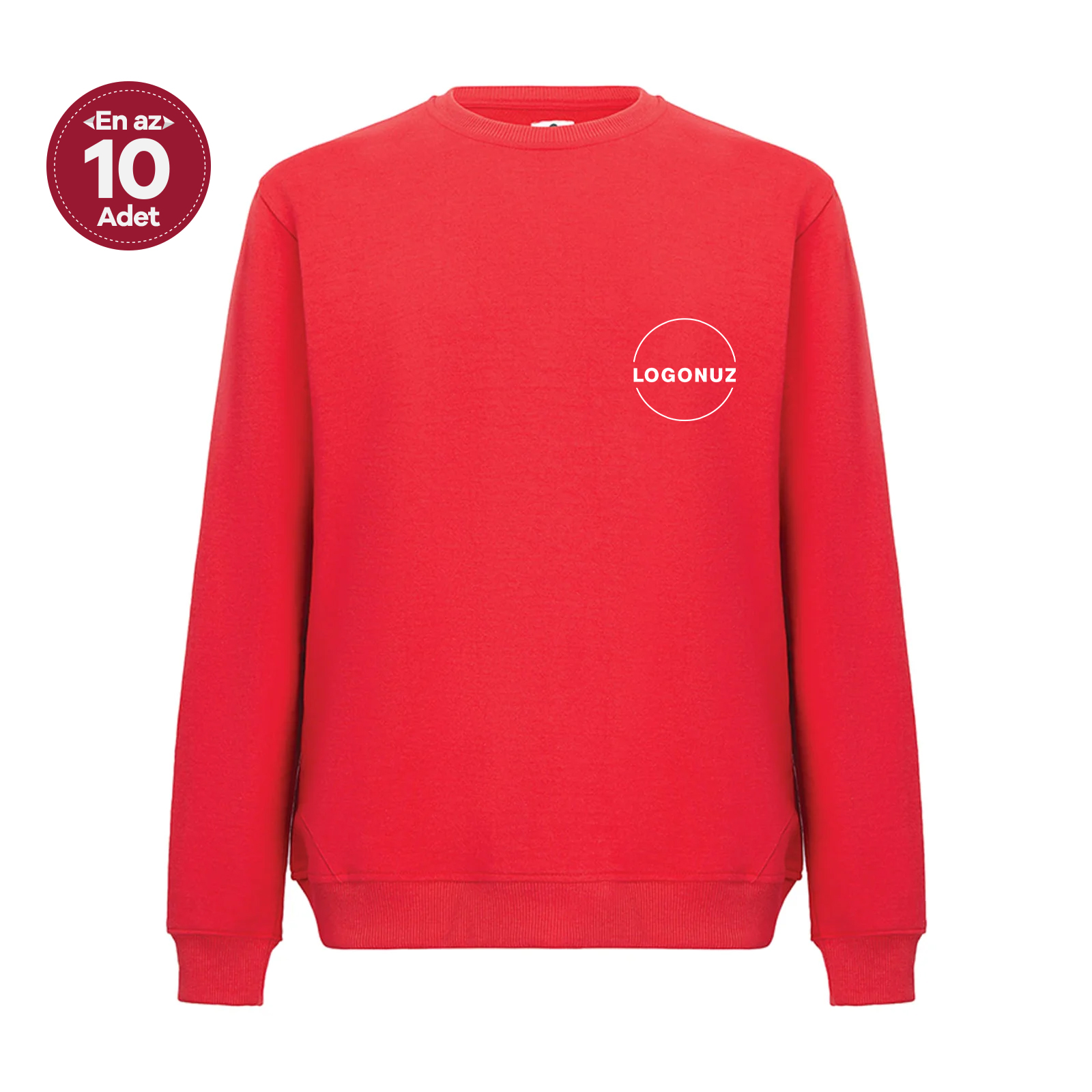Nakış uygulamalarında kumaş, ipliği güçlü şekilde tutar; logo ve yazılar dolgun, net ve uzun ömürlü bir görünüm kazanır. Kırmızı rengi, ağır gramajı ve nakışa uygun yapısıyla bu sweatshirt, kurumsal giyimde dikkat çekici, kaliteli ve güvenilir bir çözümdür.