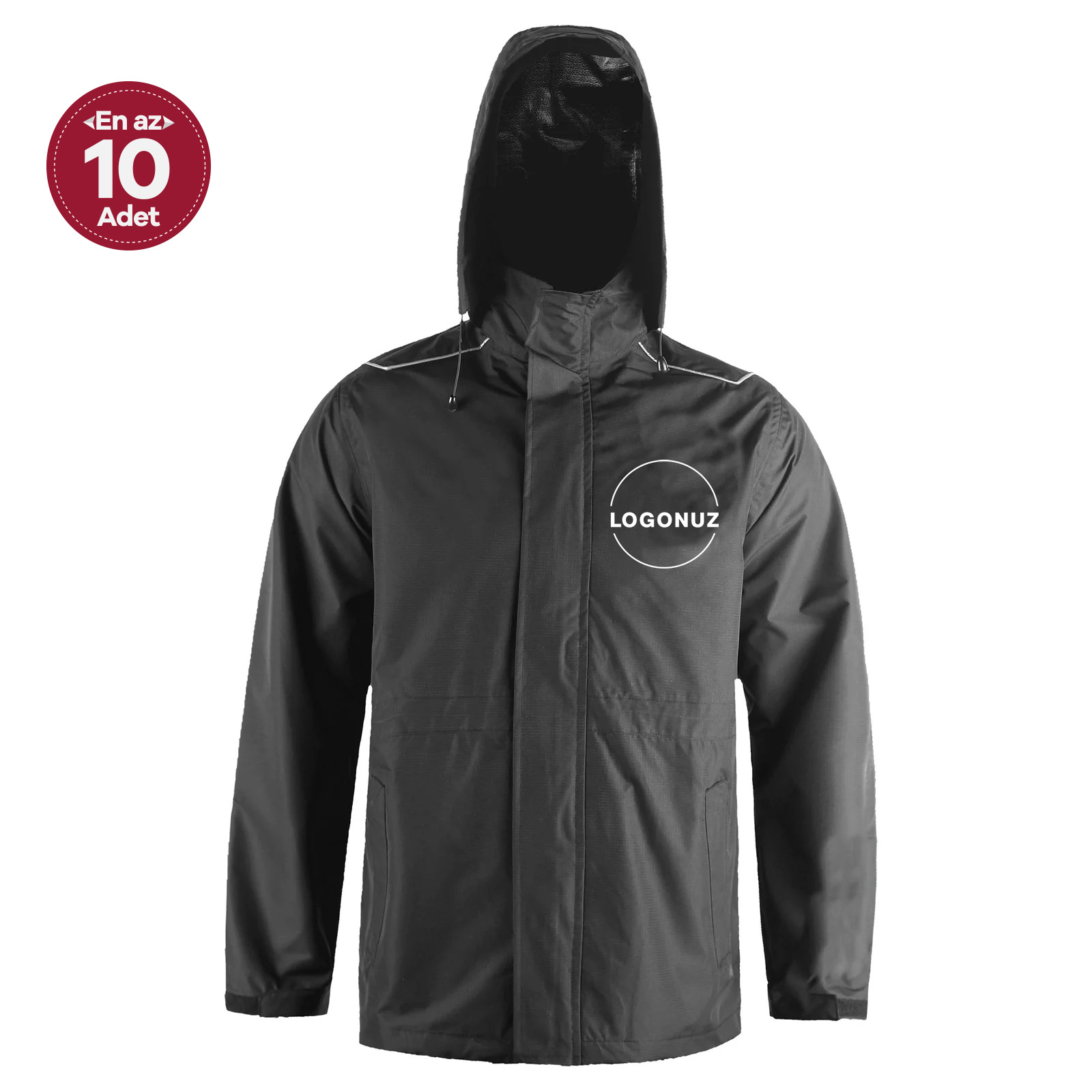 Siyah yağmurluk, zorlu hava koşullarına karşı maksimum koruma sağlarken, kurumsal kullanım için profesyonel ve güçlü bir görünüm sunar. Dayanıklılığı, fonksiyonel detayları ve modern tasarımıyla saha ekipleri, lojistik personeli, teknik servisler ve açık alanda çalışan ekipler için ideal bir dış giyim çözümüdür.