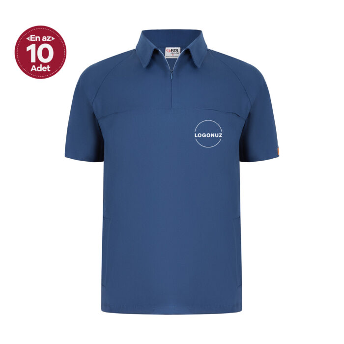Bebe Mavi Kadın Gizli Fermuar Yan Cepli Polo Yaka Doktor ve Hemşire Cerrahi Forma Üst