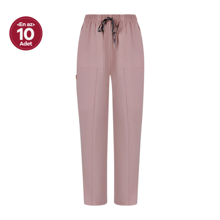 Açık Pudra Kadın Özel Cep Ve Dikişli Likralı Cerrahi Pantolon