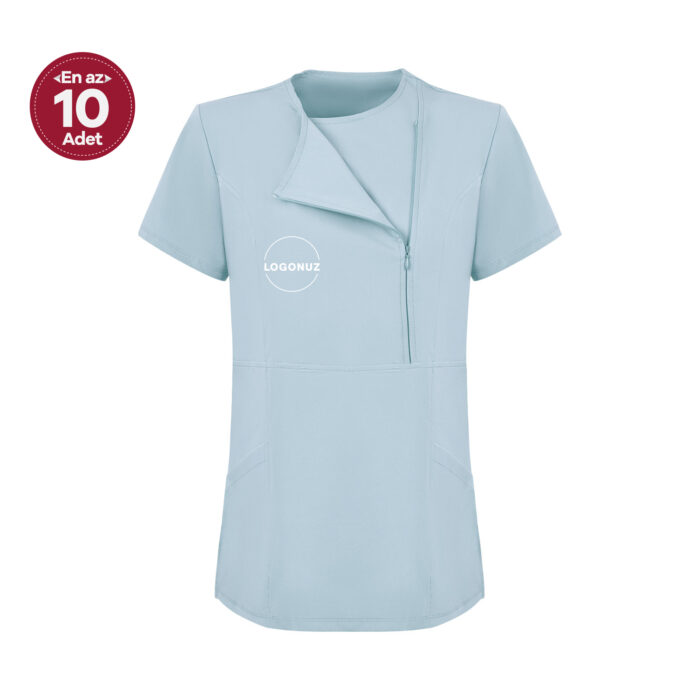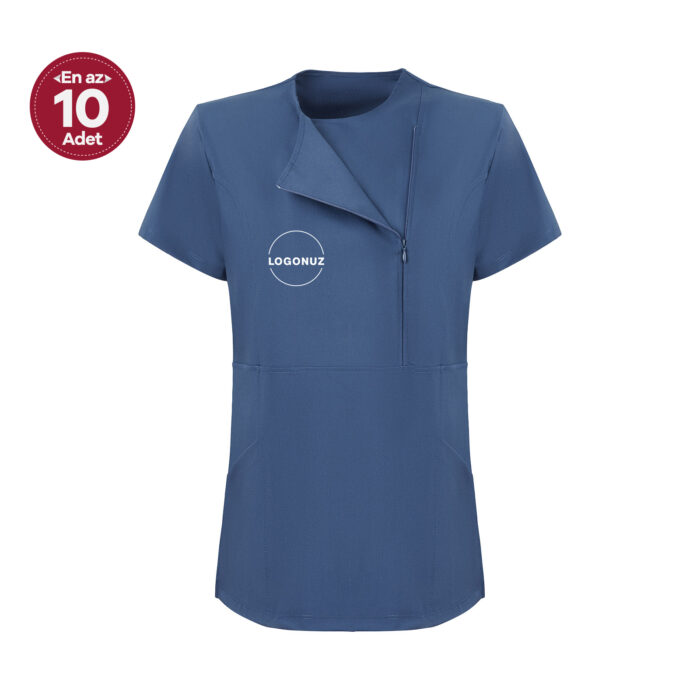 Bebe Mavi Kadın Özel Yaka Gizli Fermuarlı Doktor Ve Hemşire Cerrahi Forması Üst