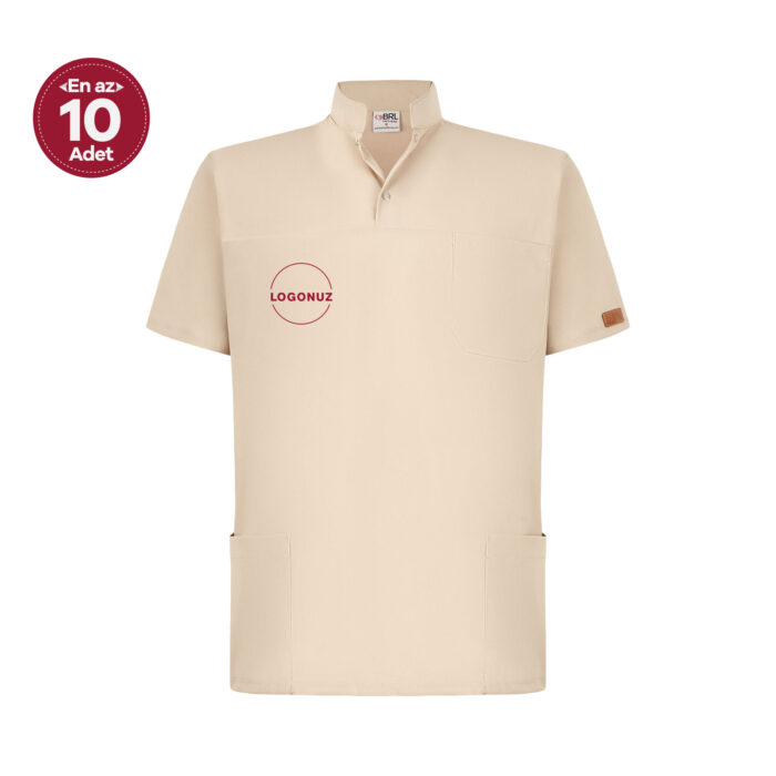 Bej Erkek Çıt Çıtlı Likralı Doktor ve Hemşire Cerrahi Forması Üst