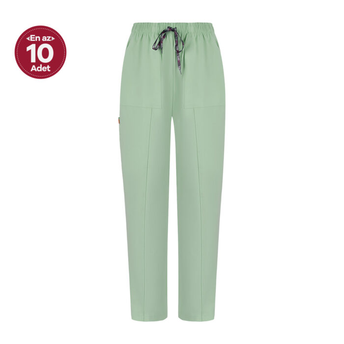 Çağla Yeşili Kadın Özel Cep ve Dikişli Likralı Cerrahi Pantolon