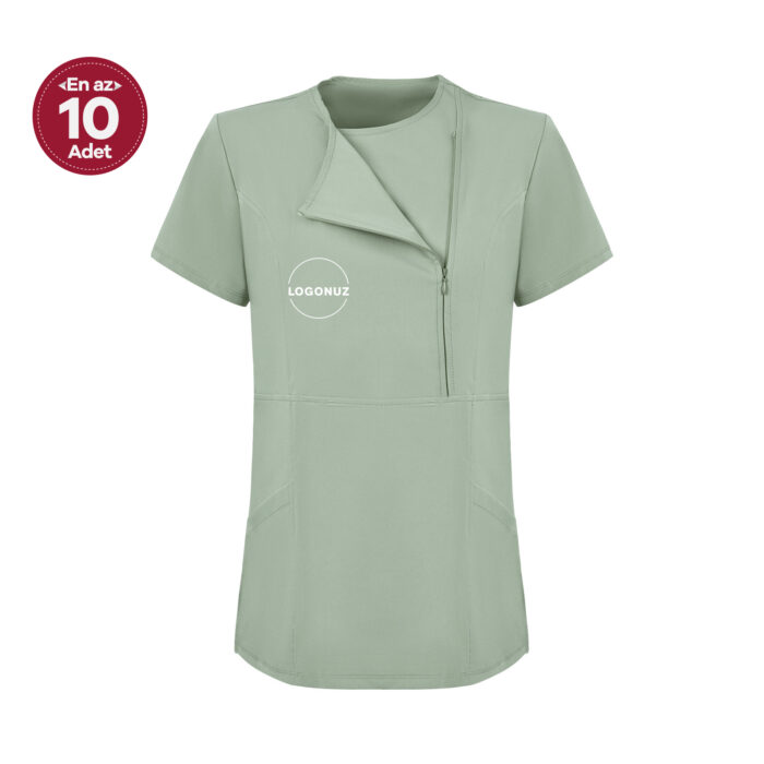 Çağla Yeşili Kadın Özel Yaka Gizli Fermuarlı Doktor Ve Hemşire Cerrahi Forması Üst