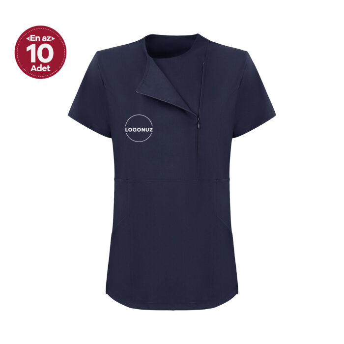 Lacivert Kadın Özel Yaka Gizli Fermuarlı Doktor Ve Hemşire Cerrahi Forması Üst