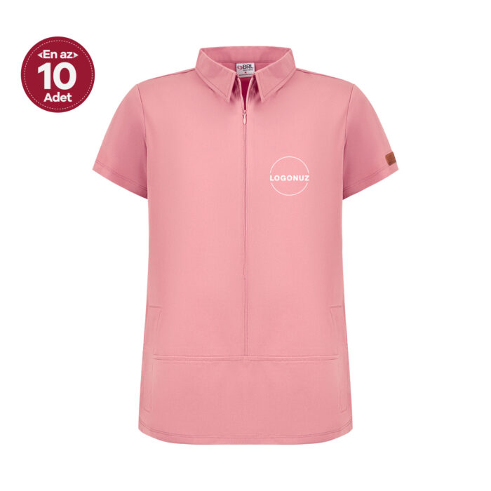 Koyu Pudra Kadın Gizli Fermuar Yan Cepli Polo Yaka Doktor Ve Hemşire Cerrahi Forma Üst