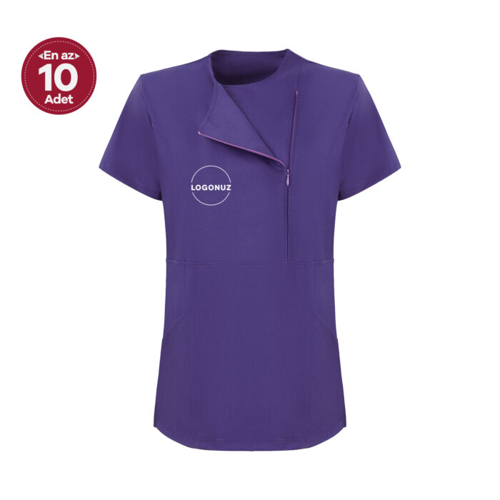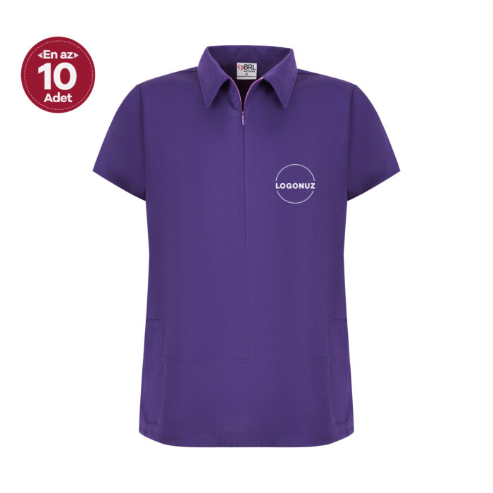 Mor Kadın Gizli Fermuar Yan Cepli Polo Yaka Doktor Ve Hemşire Üstü